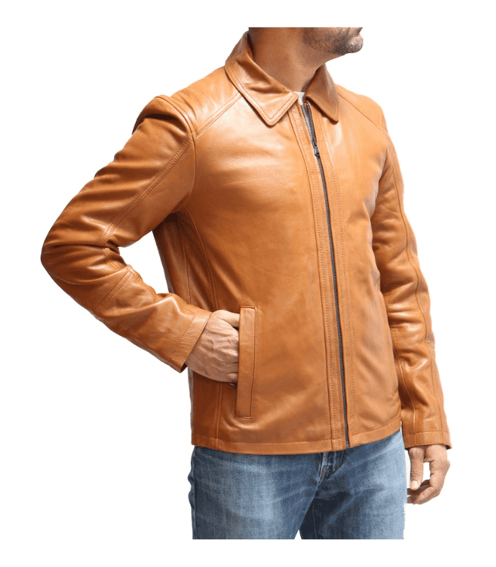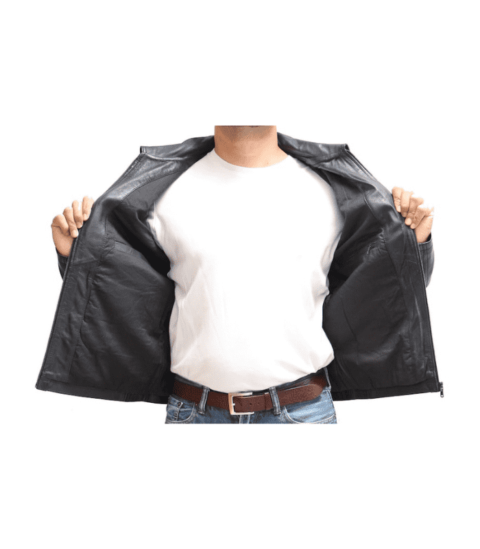 Introducing the Sharsal High-Grade Mens Black Shirt Collar Biker Leather Jacket. Luxuriously soft with a taffeta or satin inner lining. Smooth YKK front zip closure. Classic shirt collar. Stylish leather trim pockets. Elevate your style and comfort with Sharsal.